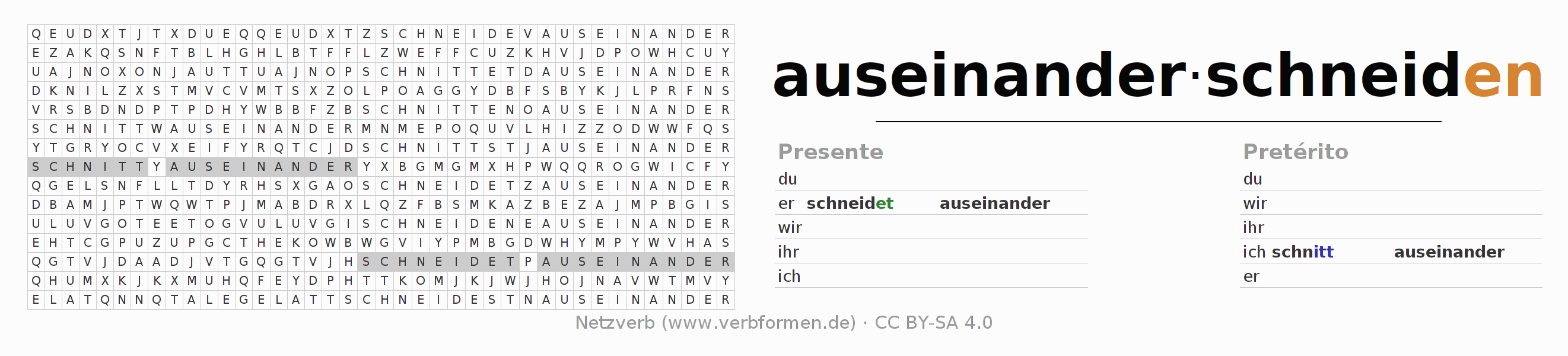 Solução do caça-palavras para a conjugação do verbo auseinanderschneiden