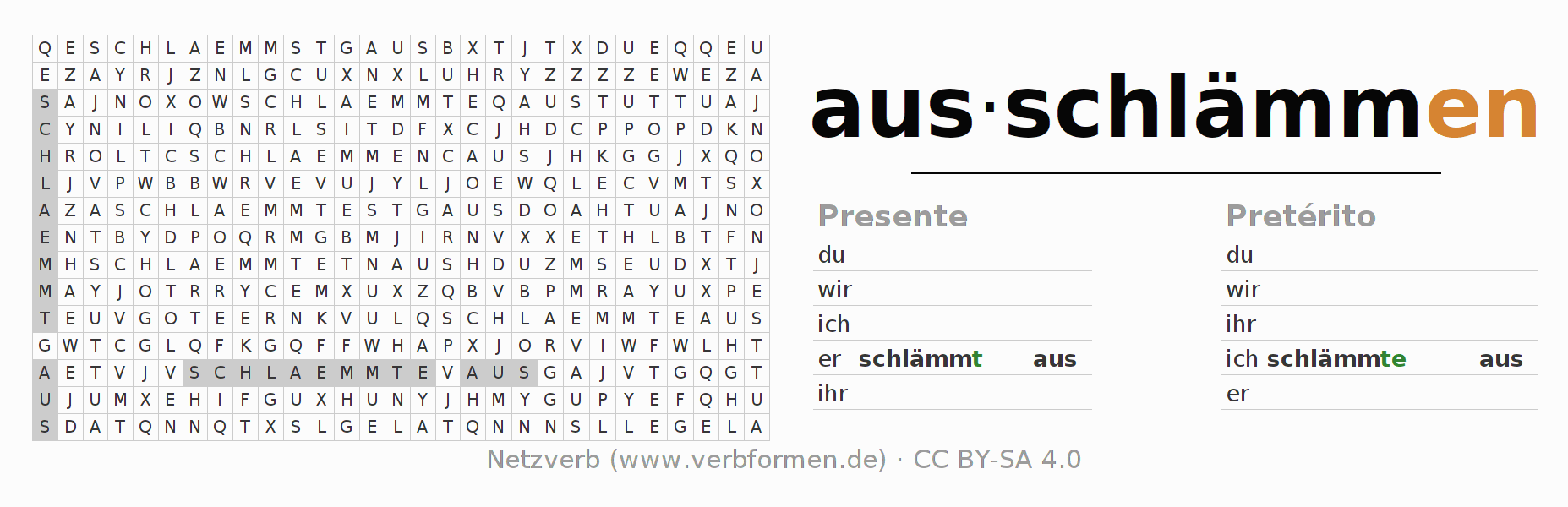 Solução do caça-palavras para a conjugação do verbo ausschlämmen