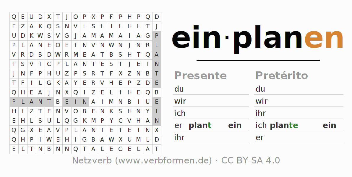 Solução do caça-palavras para a conjugação do verbo einplanen