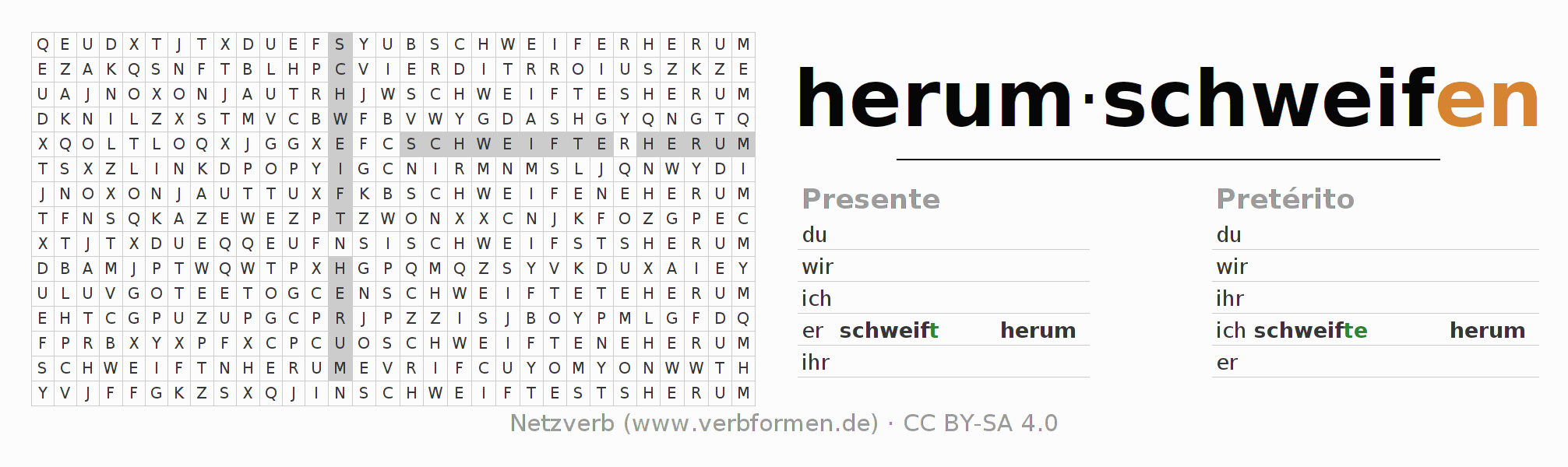 Solução do caça-palavras para a conjugação do verbo herumschweifen