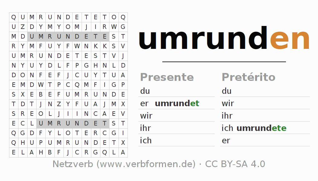 Solução do caça-palavras para a conjugação do verbo umrunden