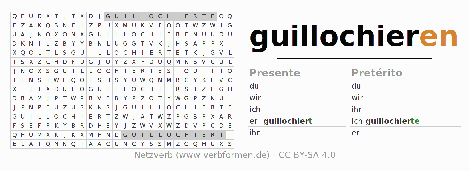 Solução do caça-palavras para a conjugação do verbo guillochieren