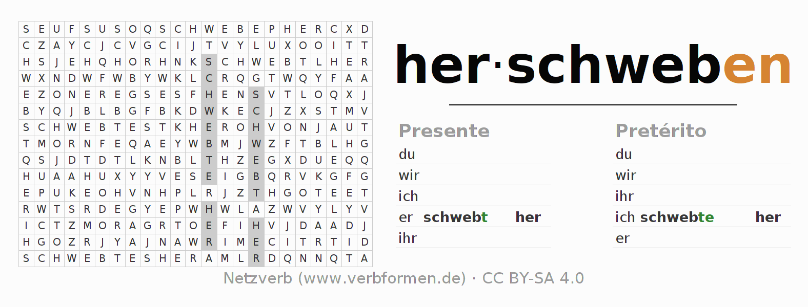 Solução do caça-palavras para a conjugação do verbo herschweben