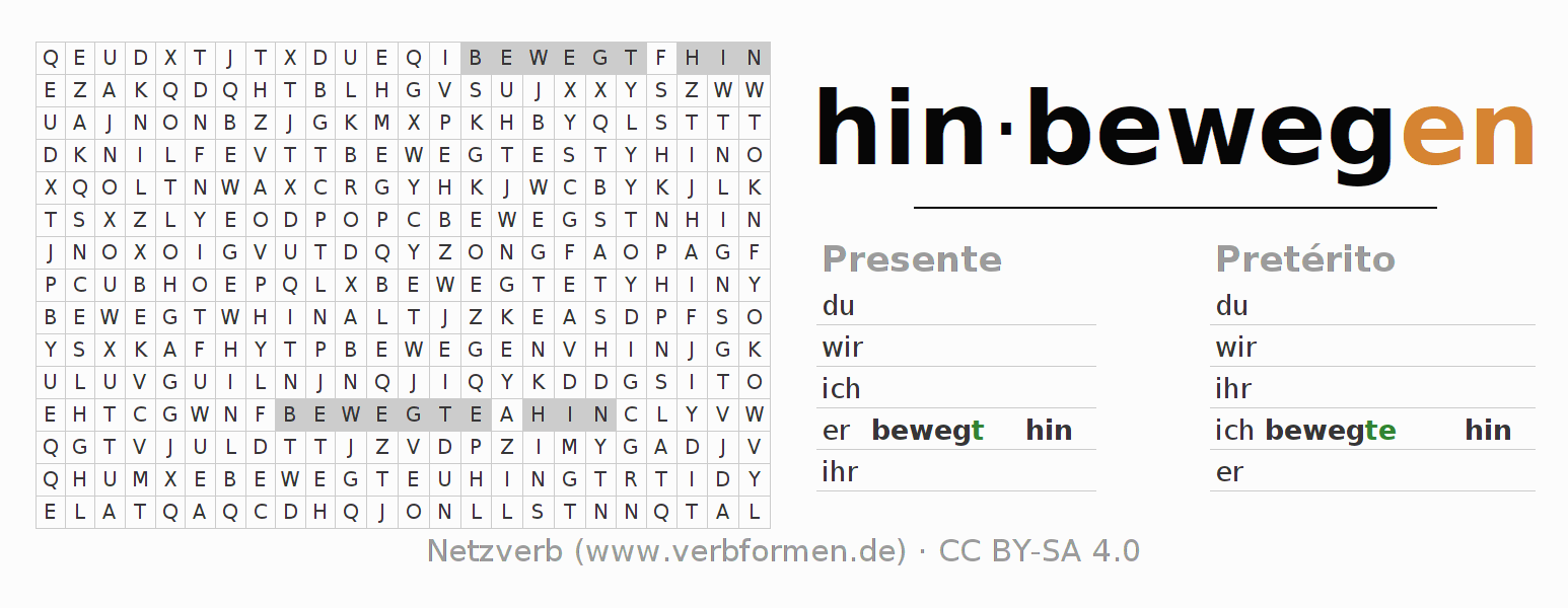 Solução do caça-palavras para a conjugação do verbo hinbewegen