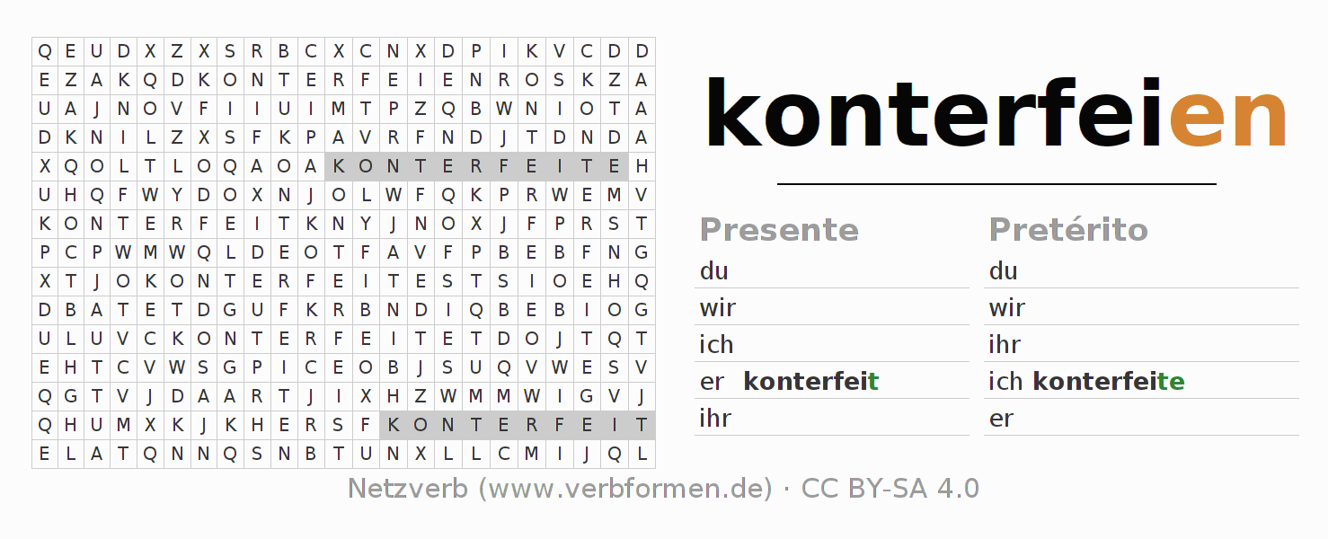 Solução do caça-palavras para a conjugação do verbo konterfeien