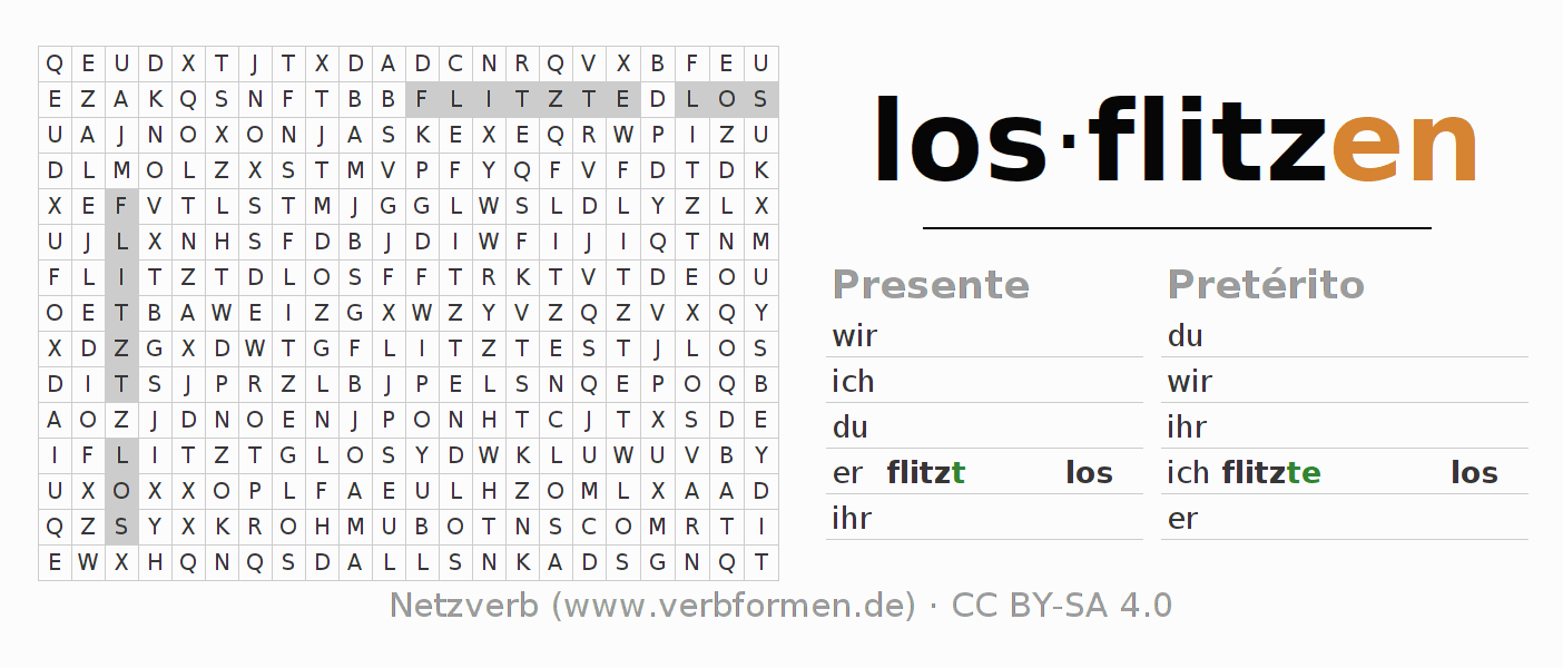Solução do caça-palavras para a conjugação do verbo losflitzen
