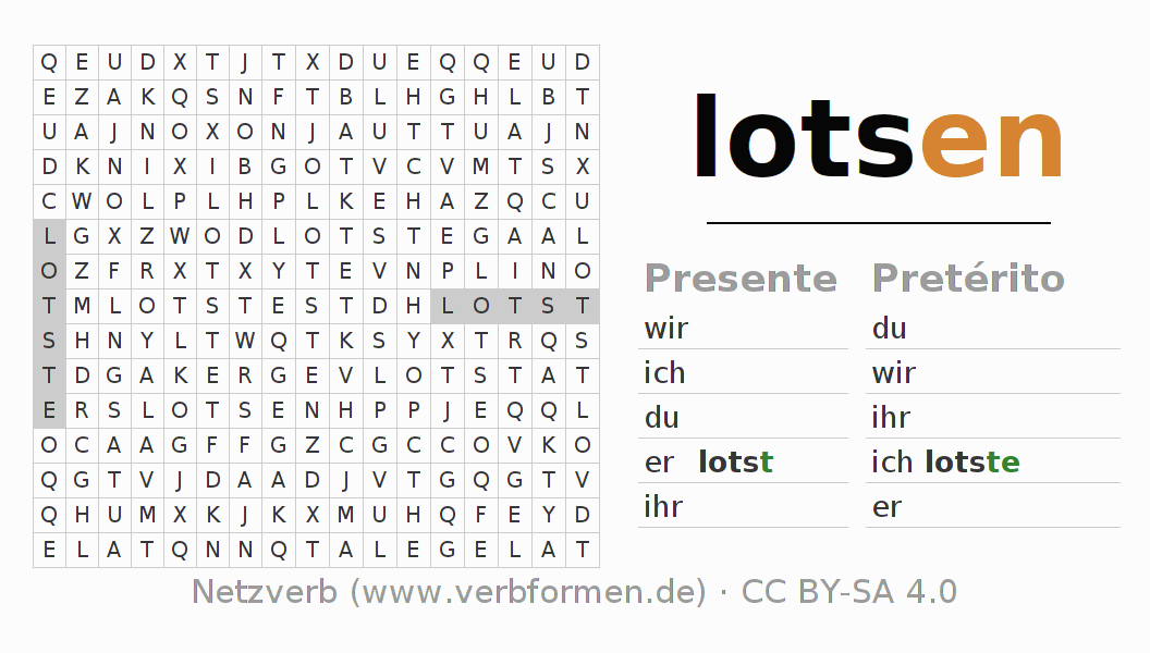 Solução do caça-palavras para a conjugação do verbo lotsen