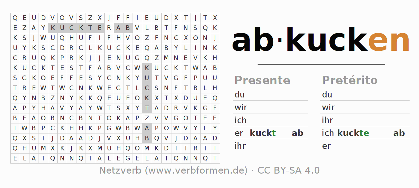 Solução do caça-palavras para a conjugação do verbo abkucken