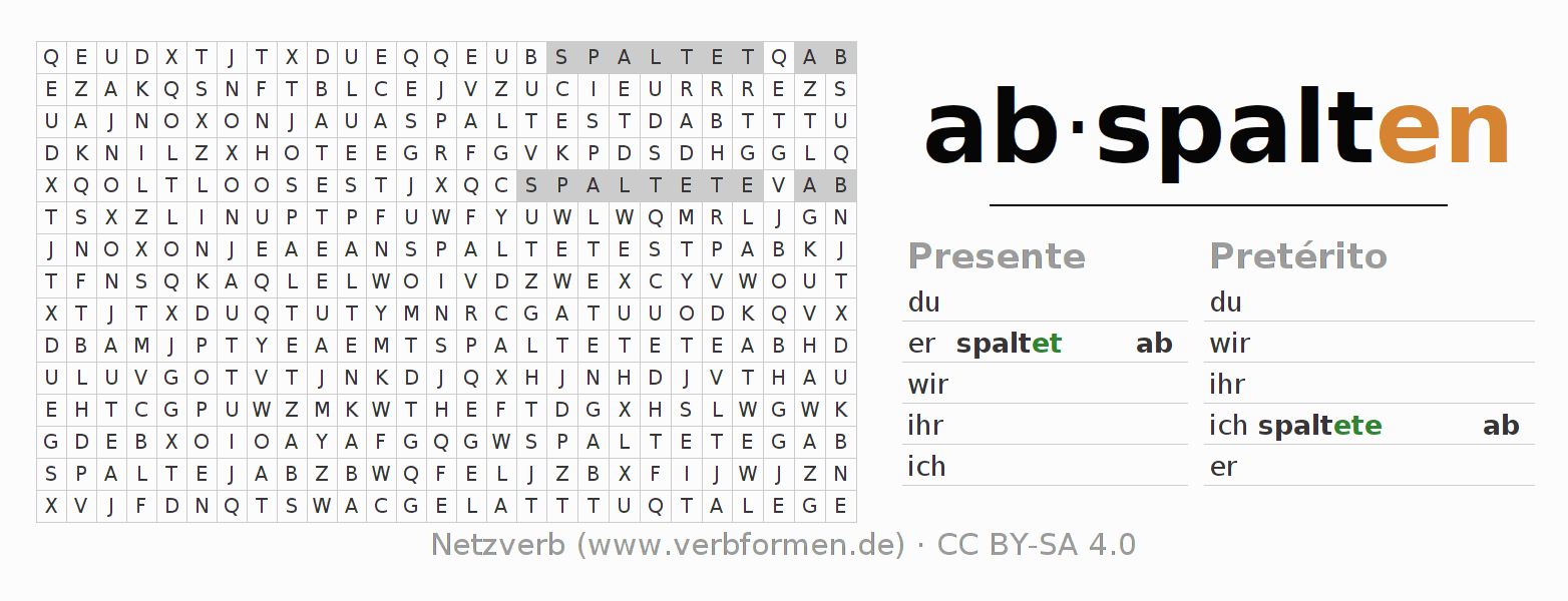 Solução do caça-palavras para a conjugação do verbo abspalten