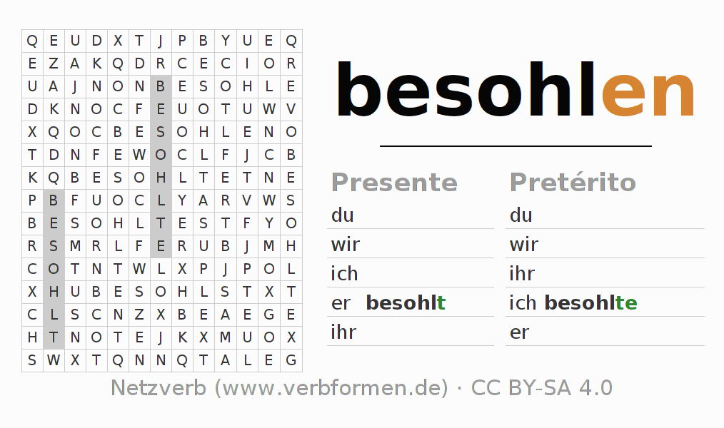 Solução do caça-palavras para a conjugação do verbo besohlen