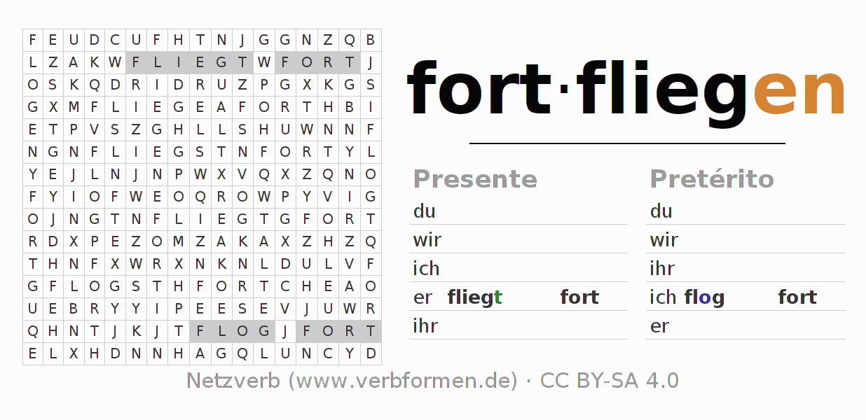 Solução do caça-palavras para a conjugação do verbo fortfliegen