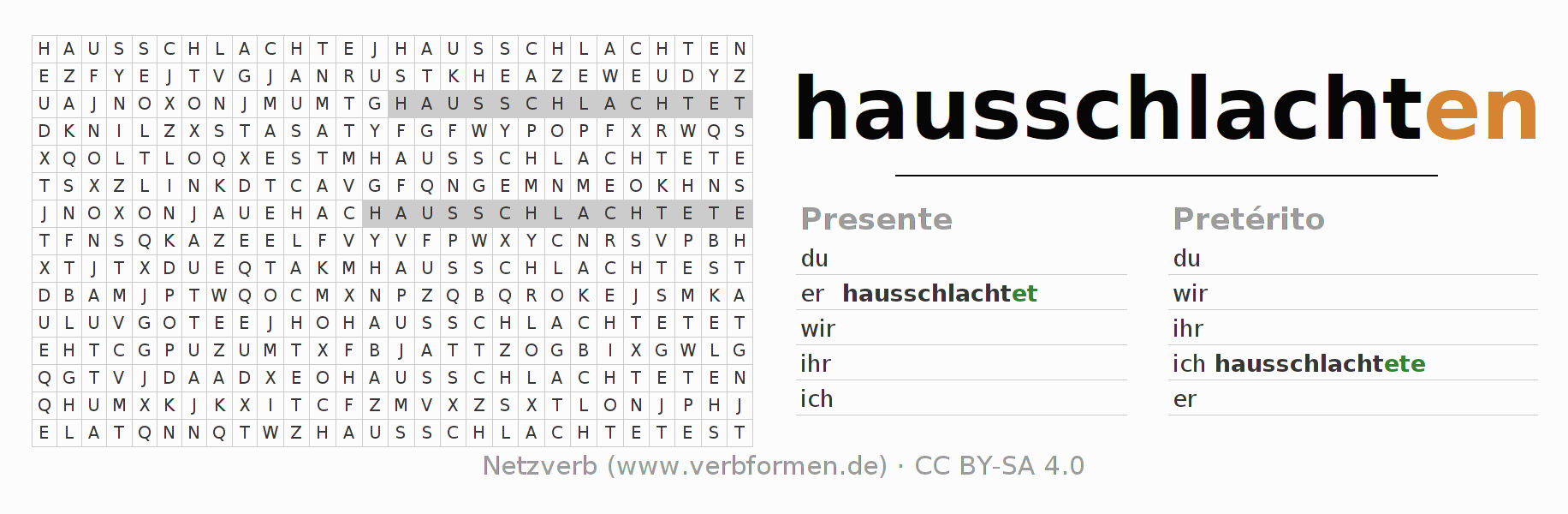 Solução do caça-palavras para a conjugação do verbo hausschlachten