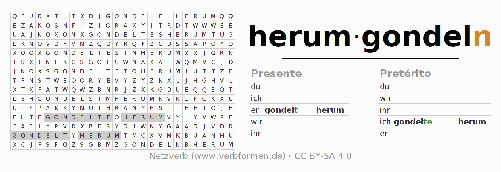 Solução do caça-palavras para a conjugação do verbo herumgondeln