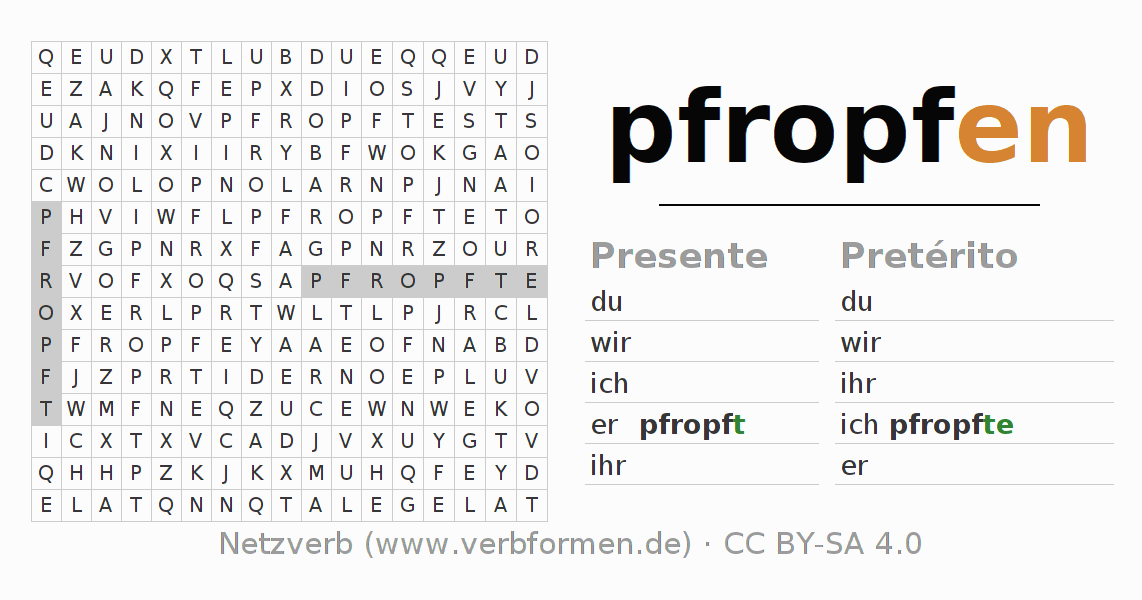 Solução do caça-palavras para a conjugação do verbo pfropfen