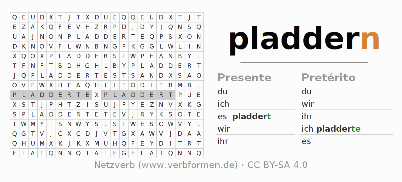 Solução do caça-palavras para a conjugação do verbo pladdern