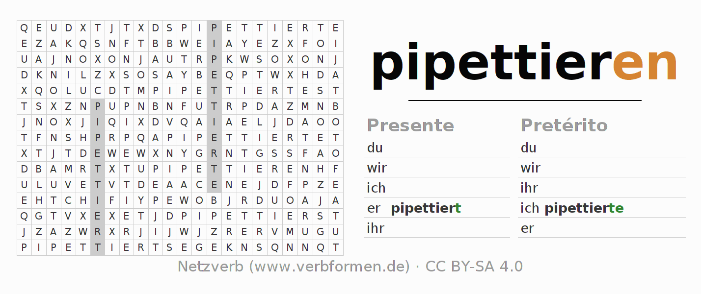Solução do caça-palavras para a conjugação do verbo pipettieren