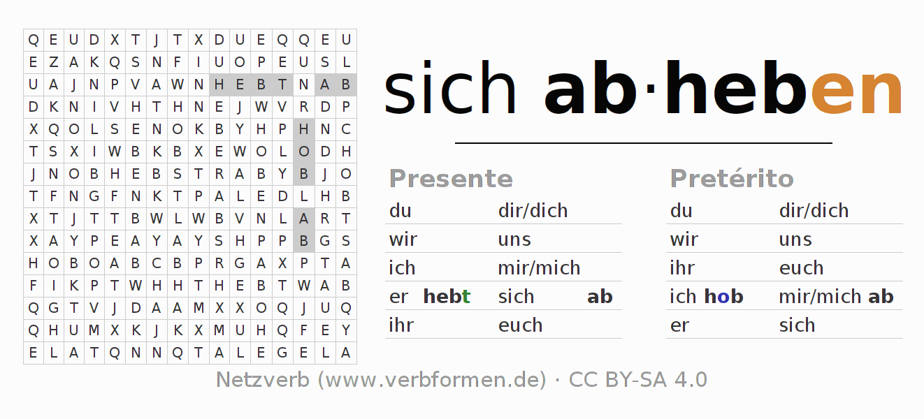 Solução do caça-palavras para a conjugação do verbo sich abheben