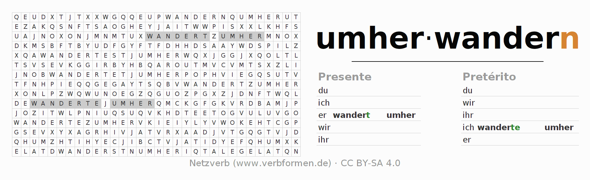 Solução do caça-palavras para a conjugação do verbo umherwandern