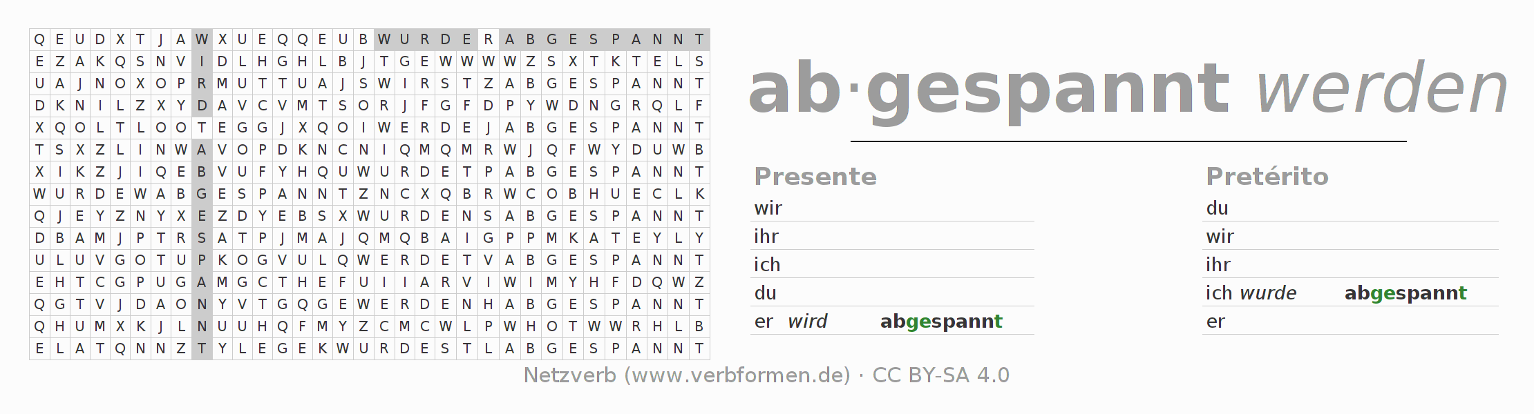 Caça-palavras com a conjugação do verbo abspannen 〈Voz Passiva〉