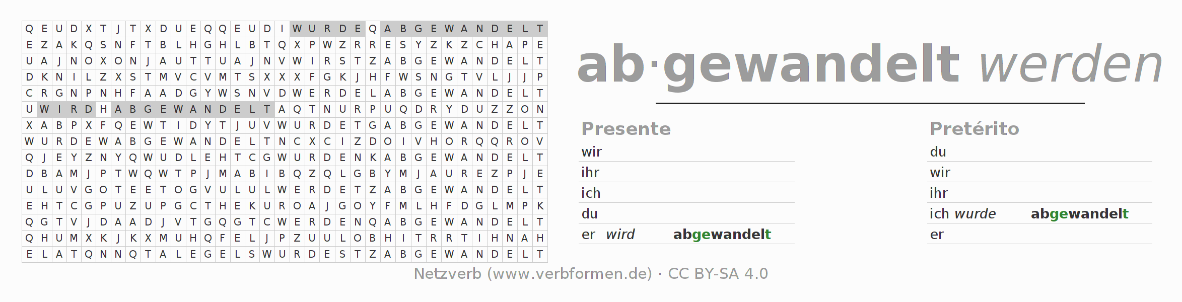 Caça-palavras com a conjugação do verbo abwandeln 〈Voz Passiva〉