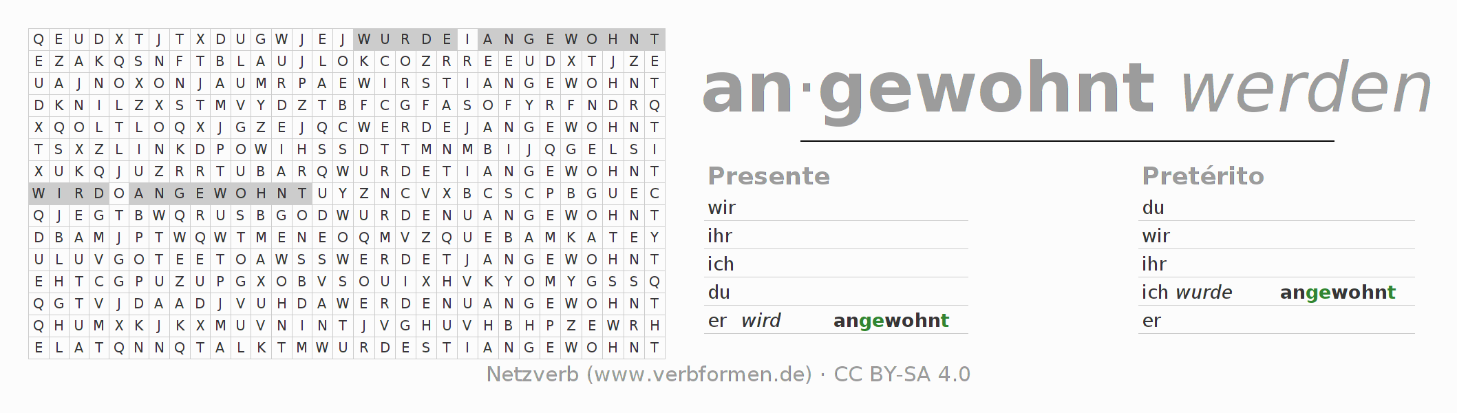 Solução do caça-palavras para a conjugação do verbo anwohnen