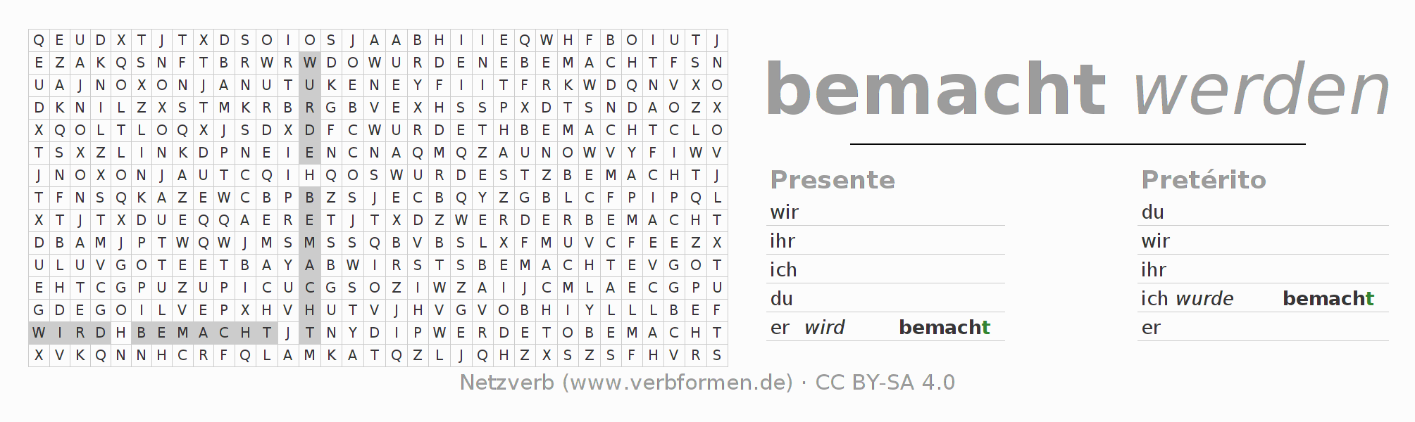 Caça-palavras com a conjugação do verbo bemachen 〈Voz Passiva〉