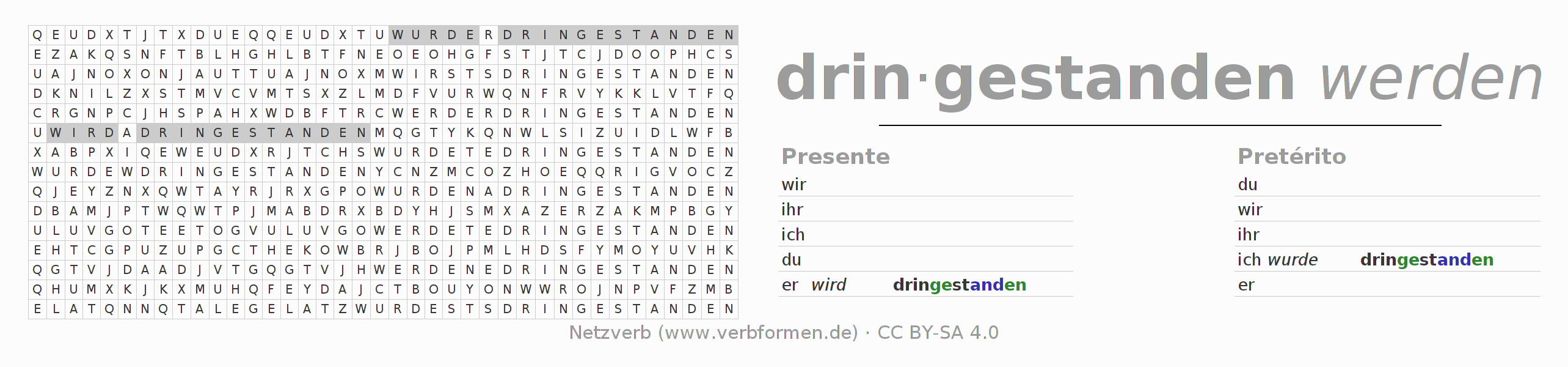 Caça-palavras com a conjugação do verbo drinstehen (ist) 〈Voz Passiva〉