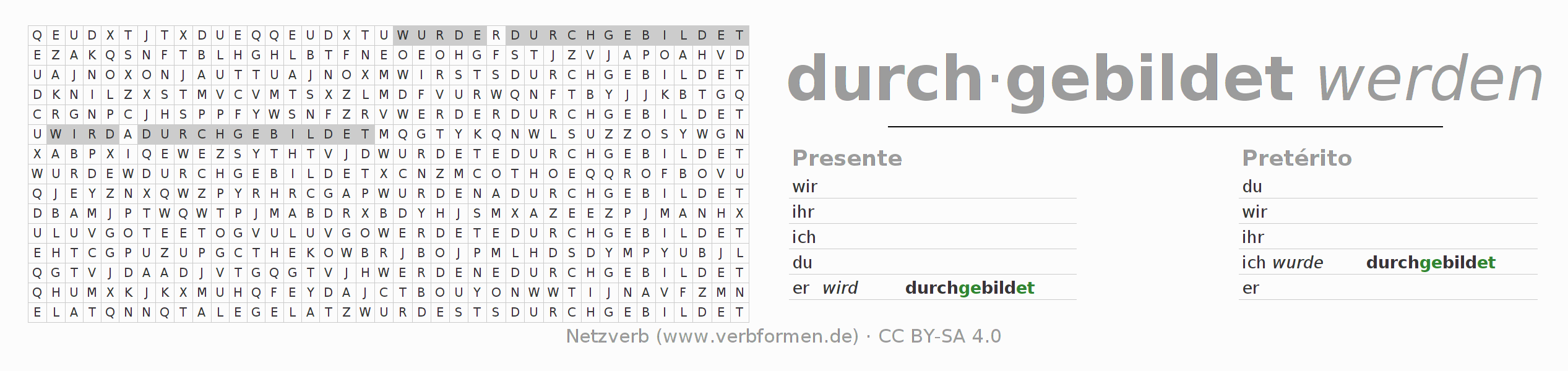 Solução do caça-palavras para a conjugação do verbo durchbilden