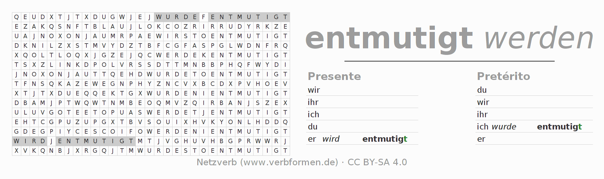 Caça-palavras com a conjugação do verbo entmutigen 〈Voz Passiva〉