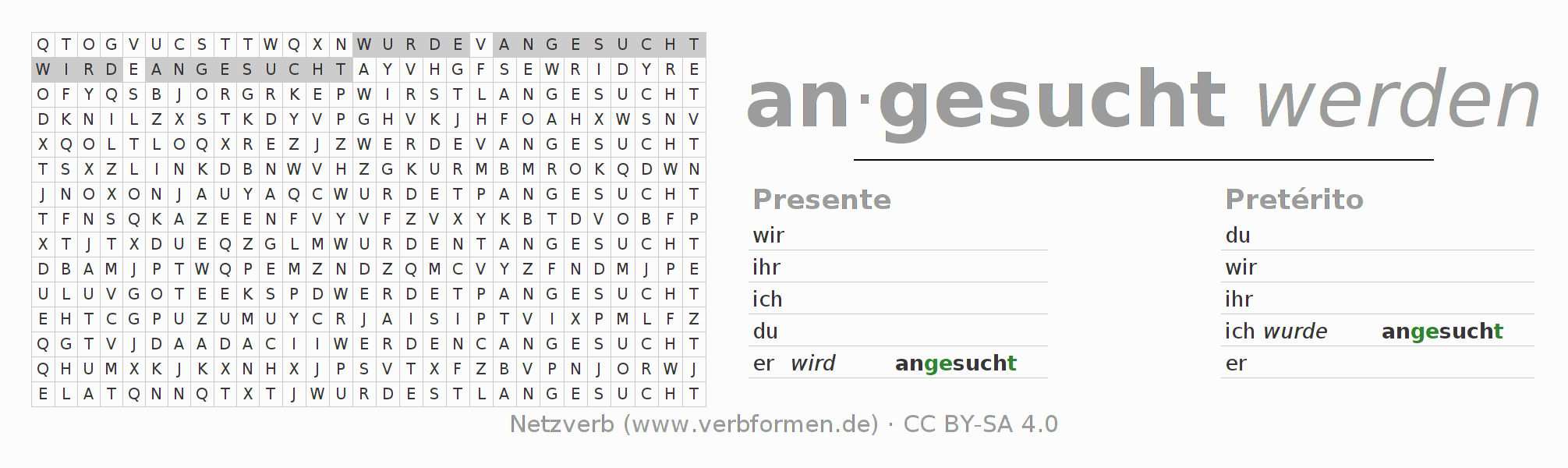 Solução do caça-palavras para a conjugação do verbo ansuchen