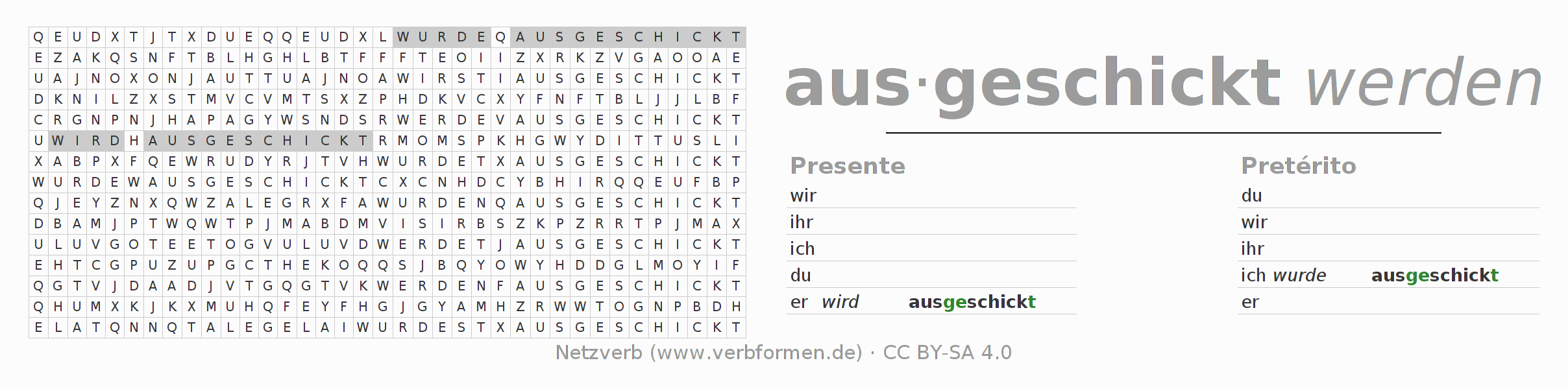 Solução do caça-palavras para a conjugação do verbo ausschicken