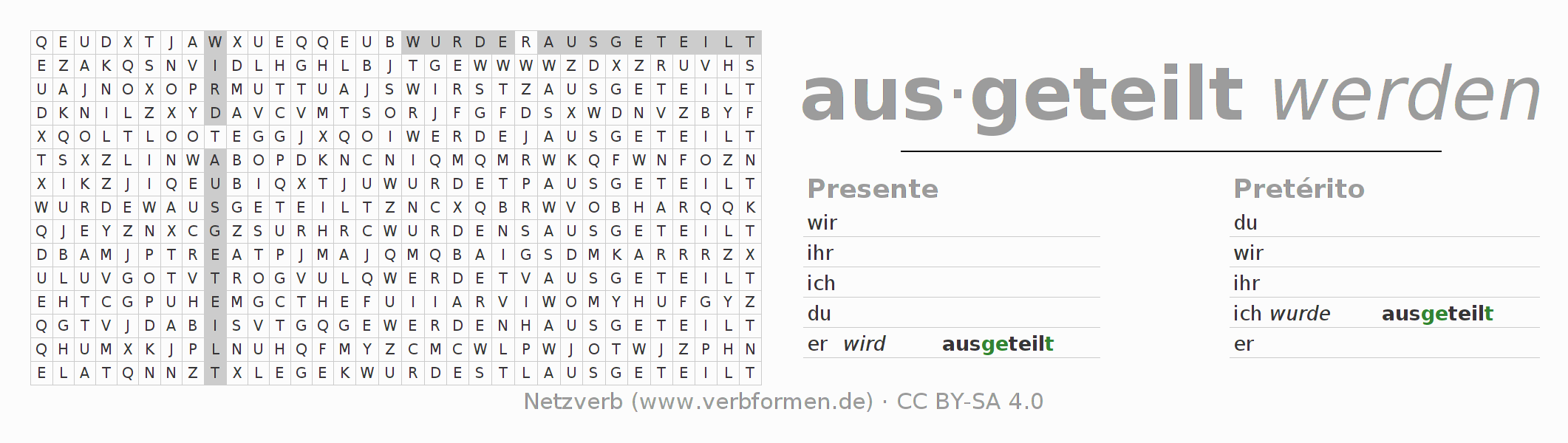 Solução do caça-palavras para a conjugação do verbo austeilen