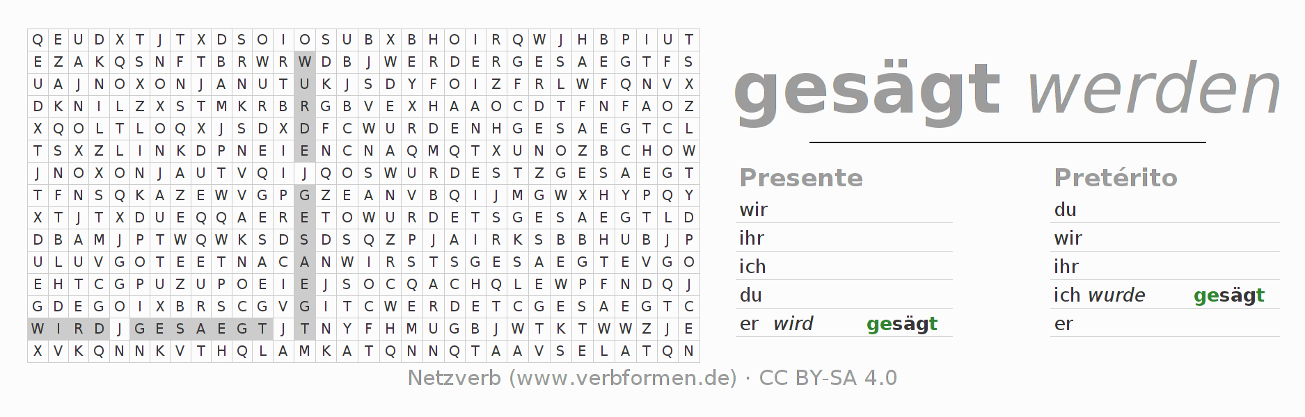 Caça-palavras com a conjugação do verbo sägen 〈Voz Passiva〉 〈Oração interrogativa〉
