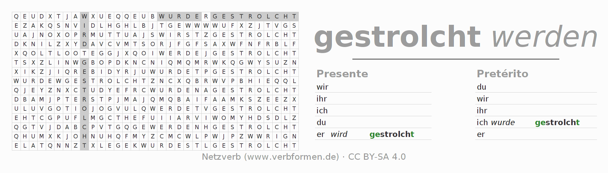 Solução do caça-palavras para a conjugação do verbo strolchen