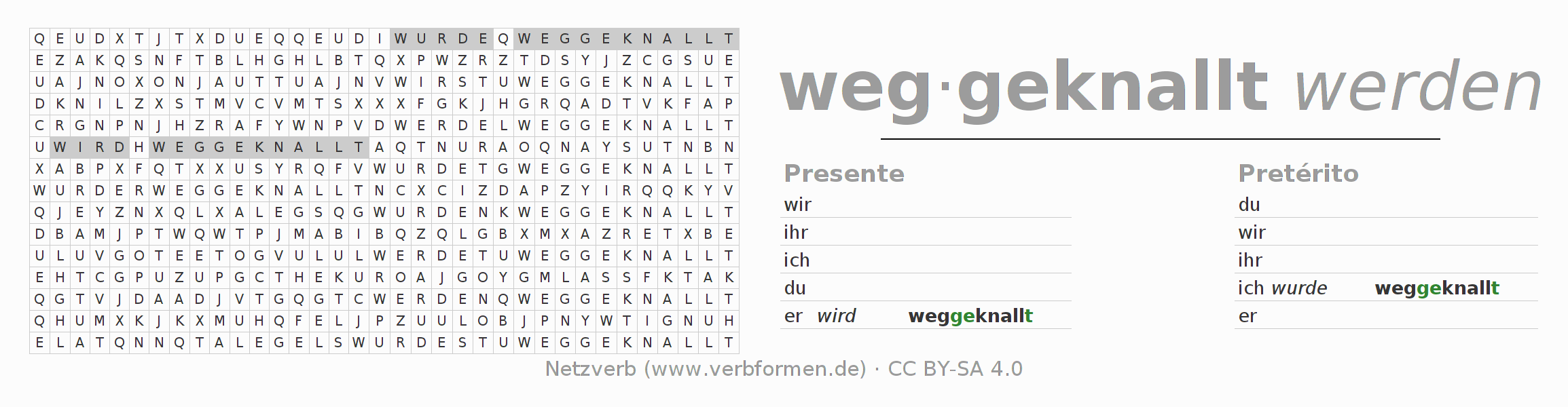 Solução do caça-palavras para a conjugação do verbo wegknallen