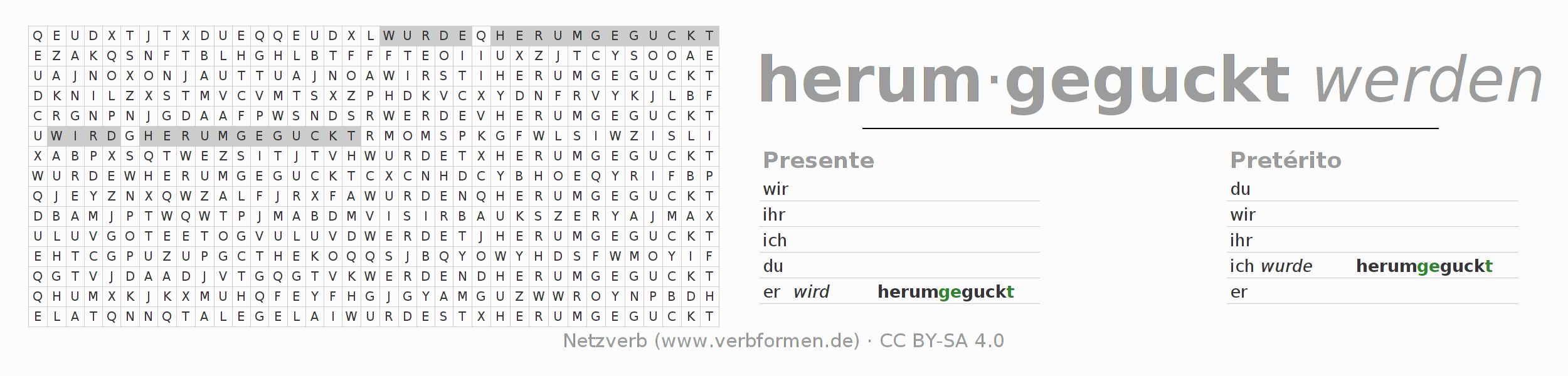 Solução do caça-palavras para a conjugação do verbo herumgucken