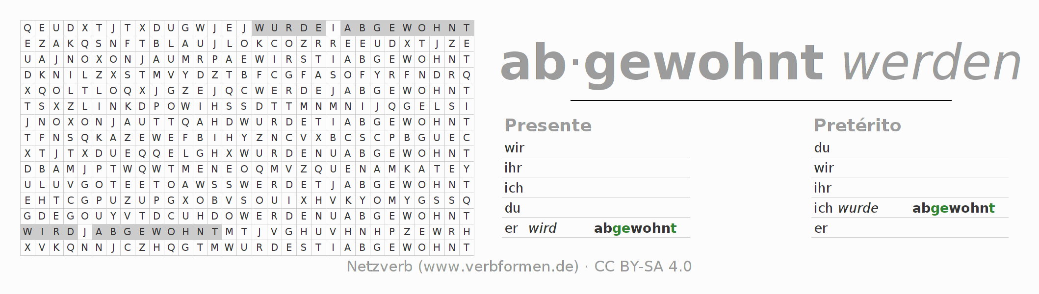Solução do caça-palavras para a conjugação do verbo abwohnen