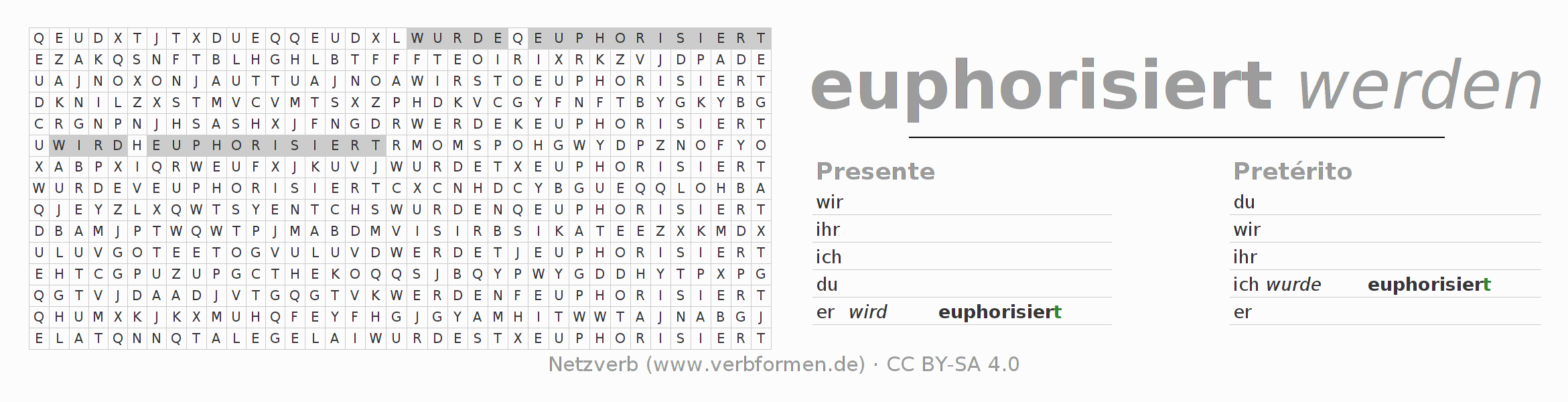 Solução do caça-palavras para a conjugação do verbo euphorisieren