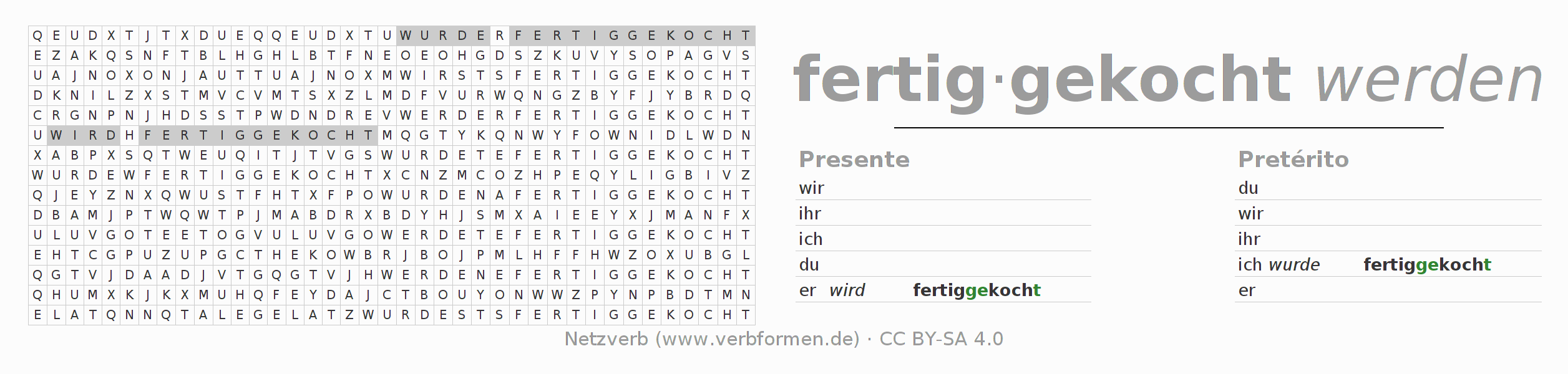 Solução do caça-palavras para a conjugação do verbo fertigkochen
