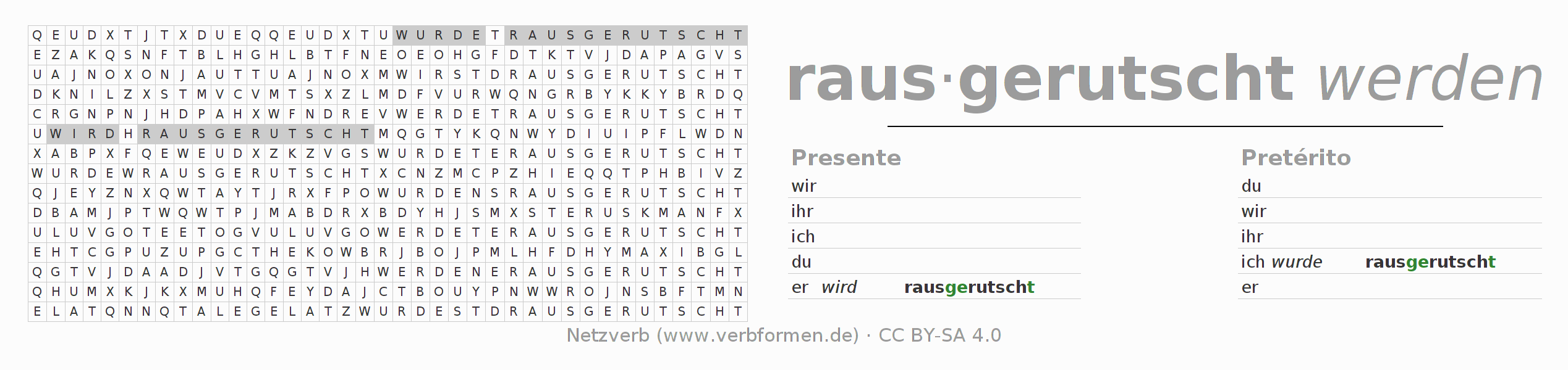 Solução do caça-palavras para a conjugação do verbo rausrutschen