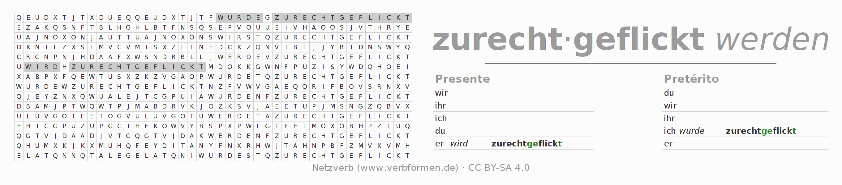 Solução do caça-palavras para a conjugação do verbo zurechtflicken