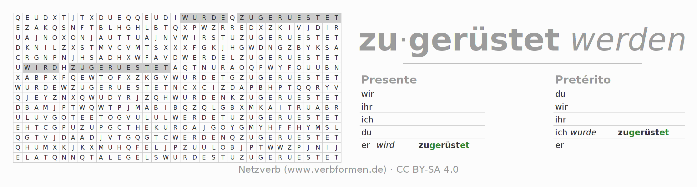 Solução do caça-palavras para a conjugação do verbo zurüsten