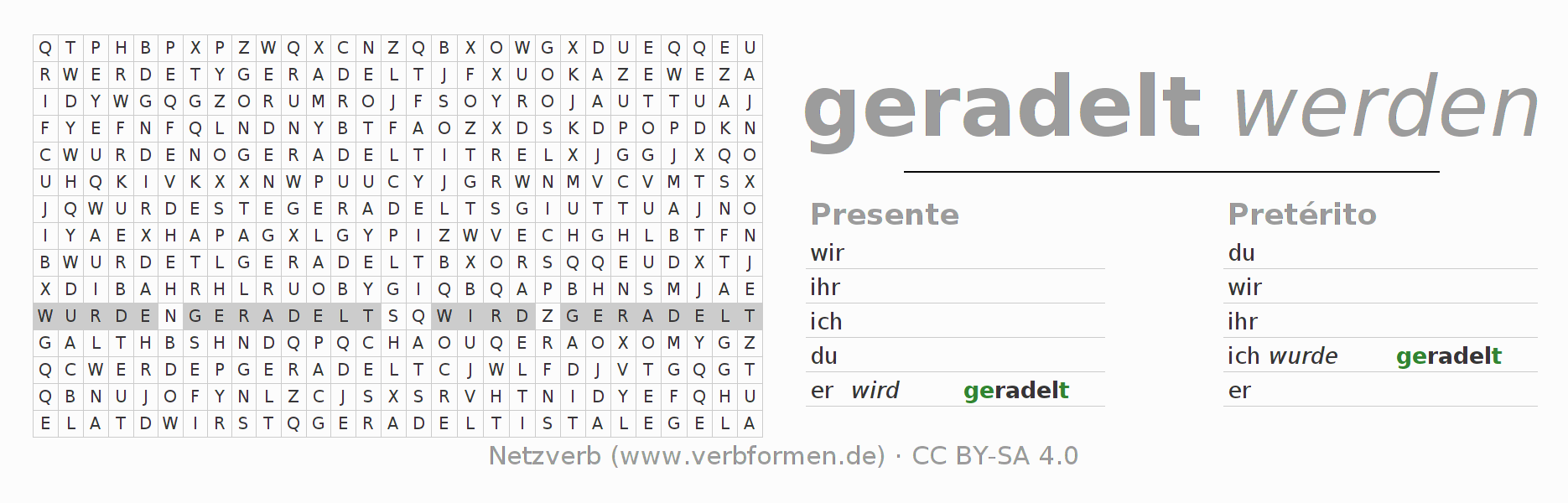 Caça-palavras com a conjugação do verbo radeln 〈Voz Passiva〉
