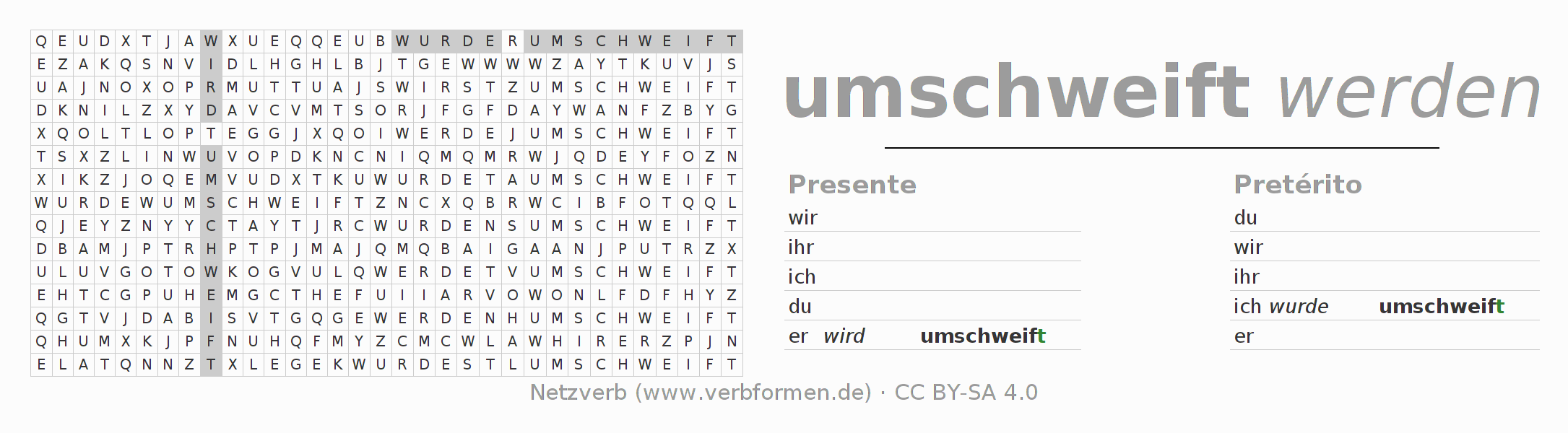 Caça-palavras com a conjugação do verbo umschweifen 〈Voz Passiva〉