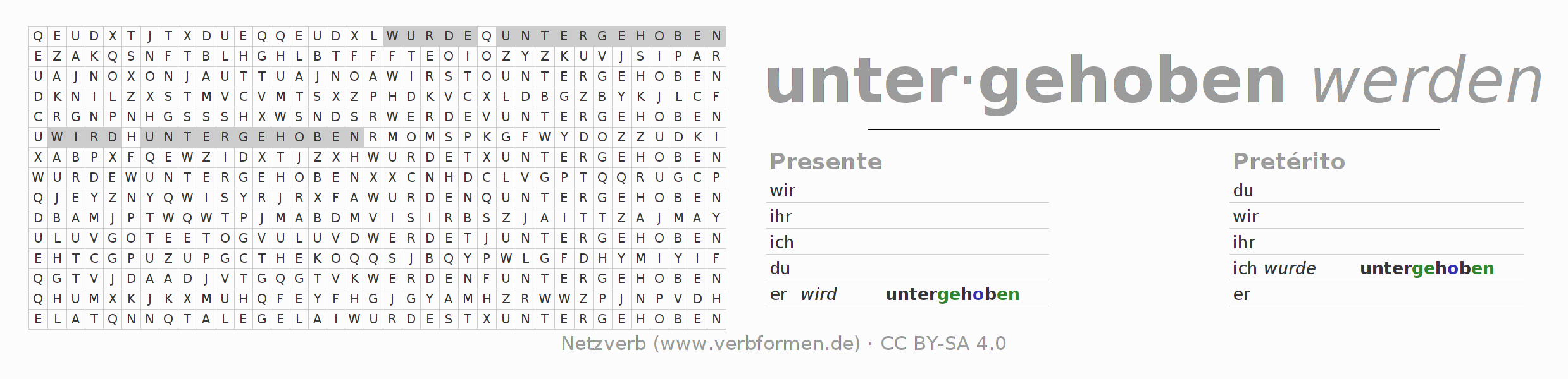 Caça-palavras com a conjugação do verbo unterheben 〈Voz Passiva〉