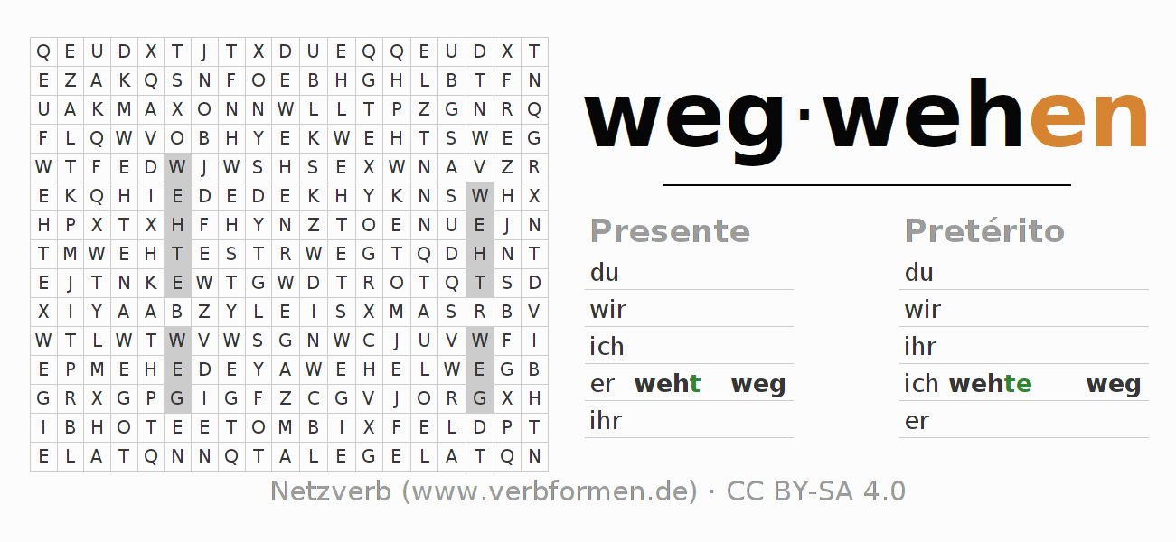 Solução do caça-palavras para a conjugação do verbo wegwehen
