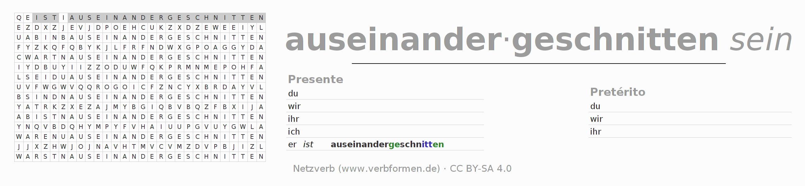 Solução do caça-palavras para a conjugação do verbo auseinanderschneiden