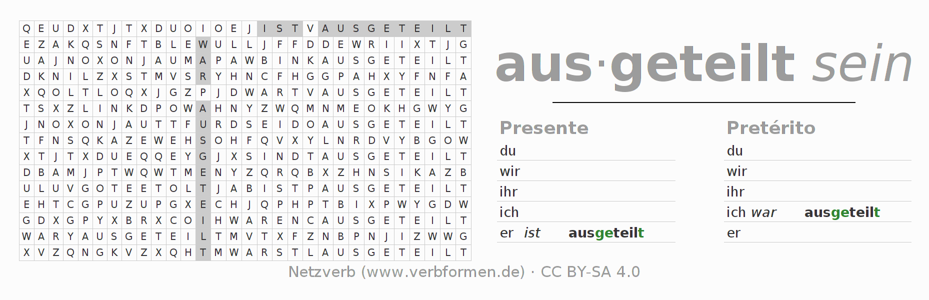 Caça-palavras com a conjugação do verbo austeilen 〈Estado passivo〉