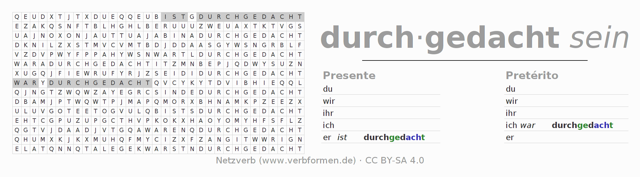 Solução do caça-palavras para a conjugação do verbo durch-denken
