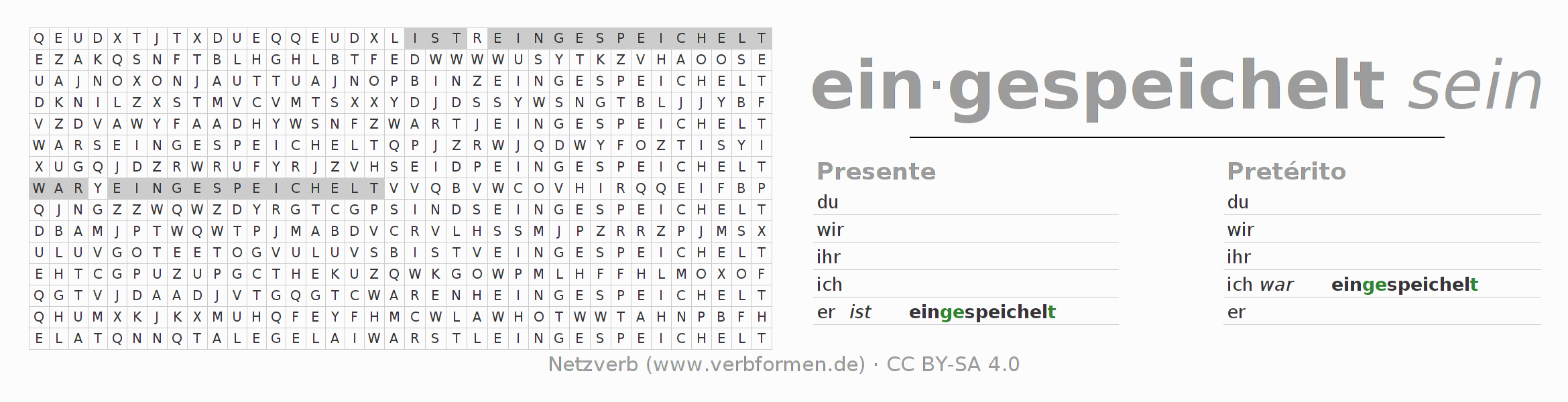 Caça-palavras com a conjugação do verbo einspeicheln 〈Estado passivo〉